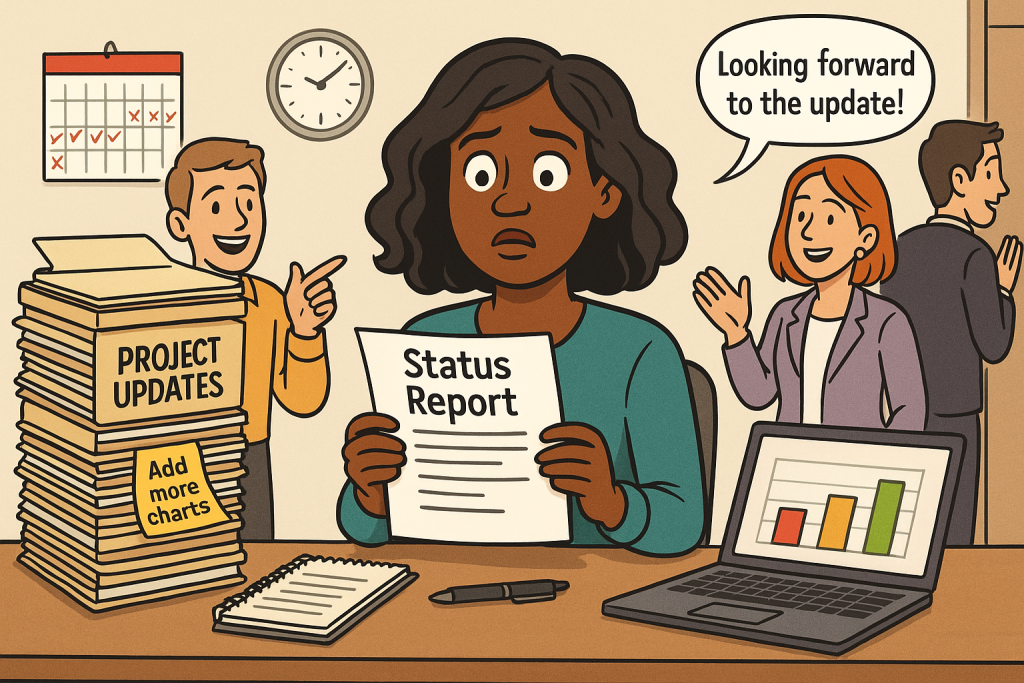 The status report is your stage. Play it right, and you look like the calm, collected leader holding it all together. Play it wrong, and you’re the reason for another “urgent meeting.”